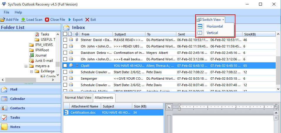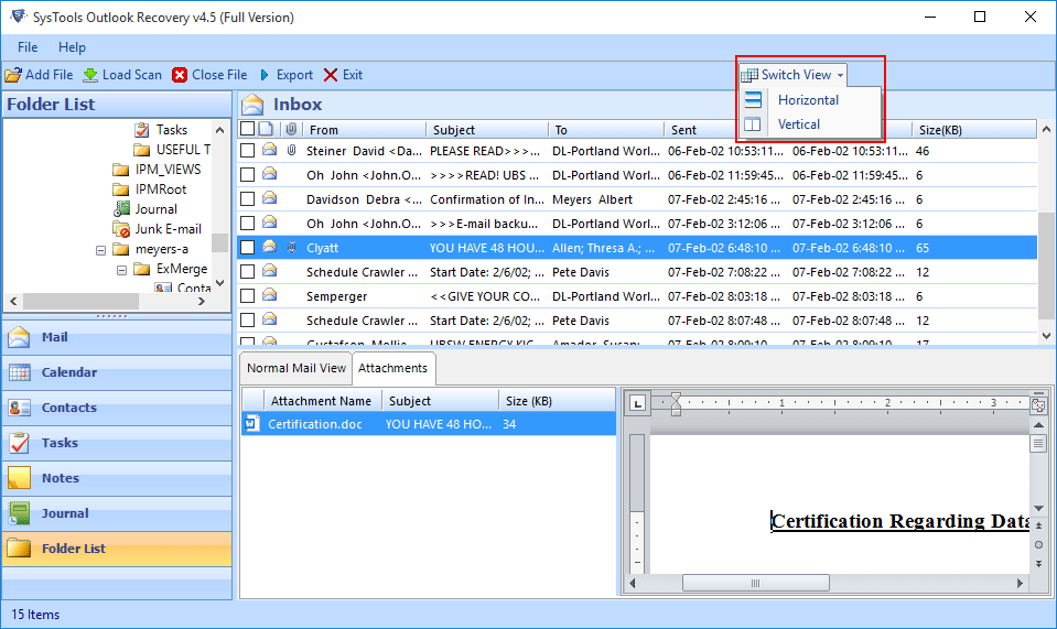 The software will recover all the data items like Emails , contacts, tasks , journals and calendars that are within the selected PST file without making any changes to the folder structure.